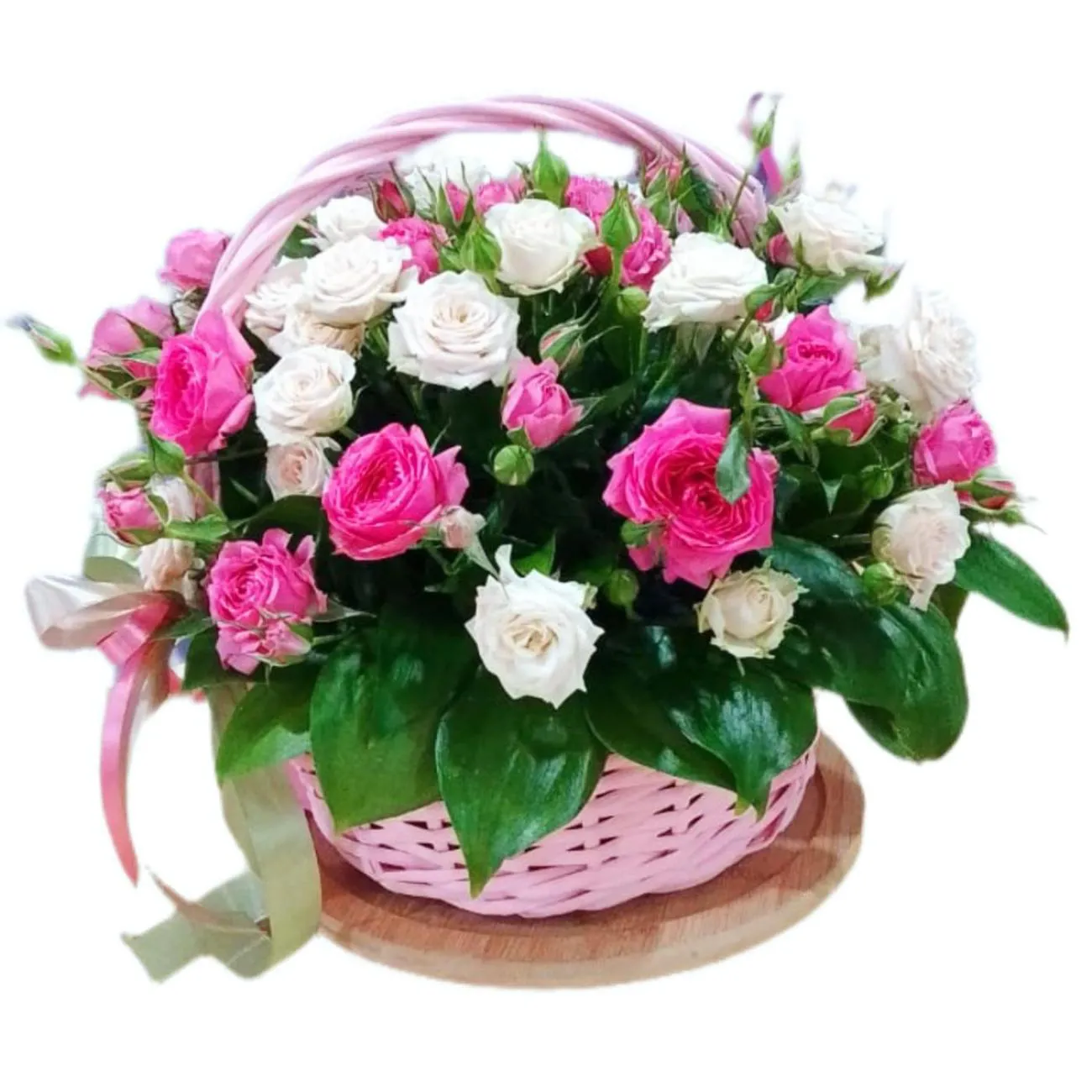 • Премиум( кустовая роза - 25 шт., зелень, оазис, корзина