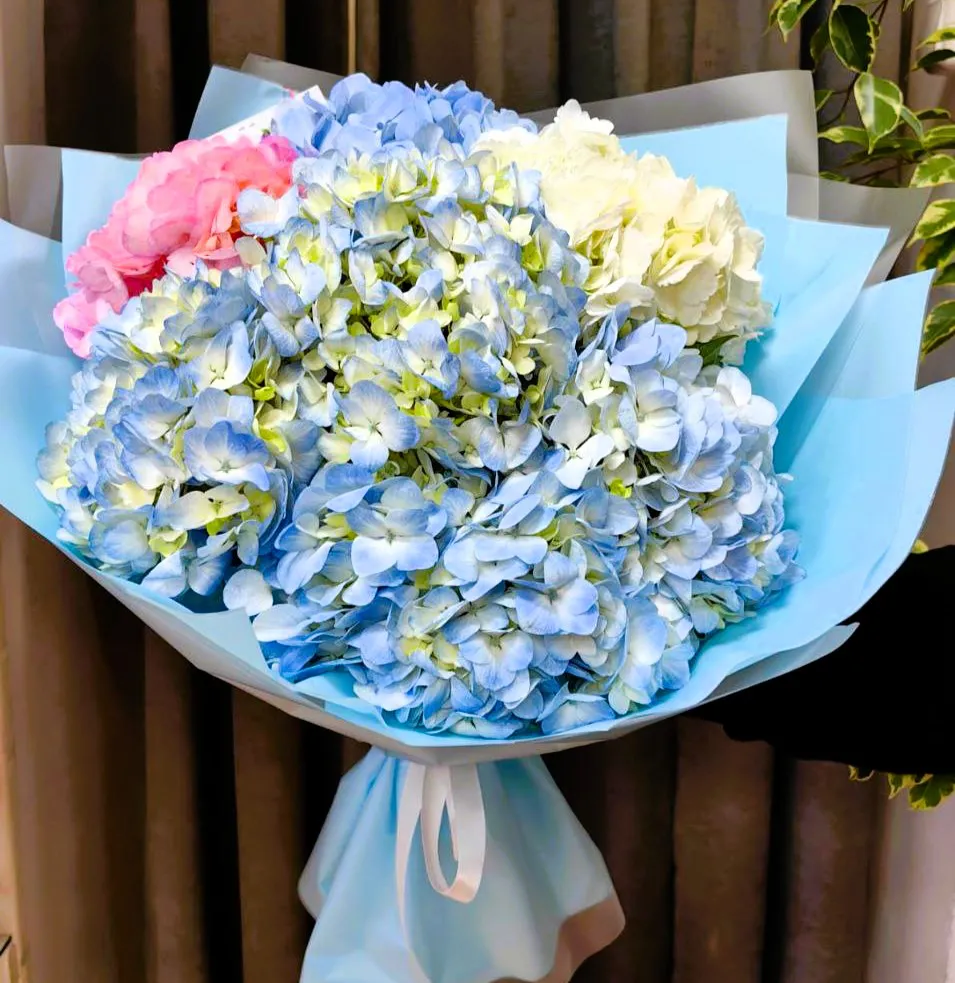 Разноцветные гортензии имеют особую привлекательность благодаря своим ярким цветам и пушистым соцветиям. Такой букет станет ярким акцентом в интерьере, придавая уют и гармонию. Гортензии также отлично подходят для свадебных и праздничных мероприятий, добавляя шарм и элегантность к любому торжеству.