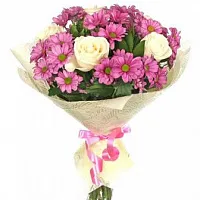 - Стандарт (Кустовая хризантема 4 шт,, роза 5шт, зелень, упаковка, лента)