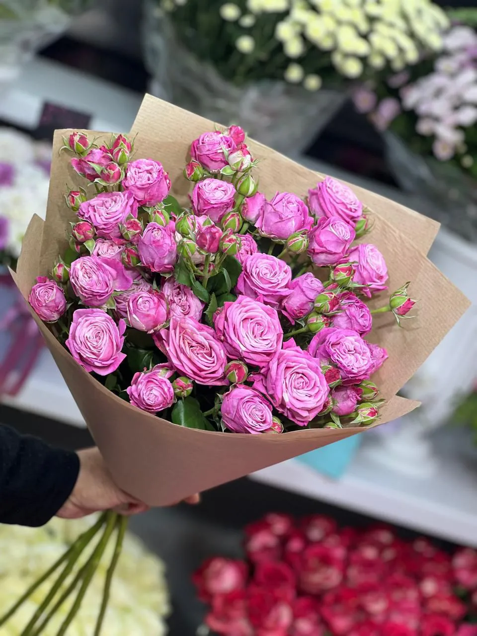 • Премиум - кустовая роза - 15 шт ,упаковка,лента